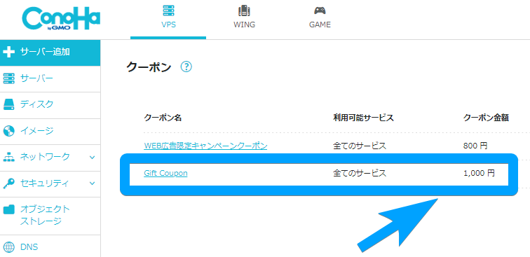 After completing ConoHa registration (not requiring any specific amount, just starting any plan contract), the coupon automatically becomes available.