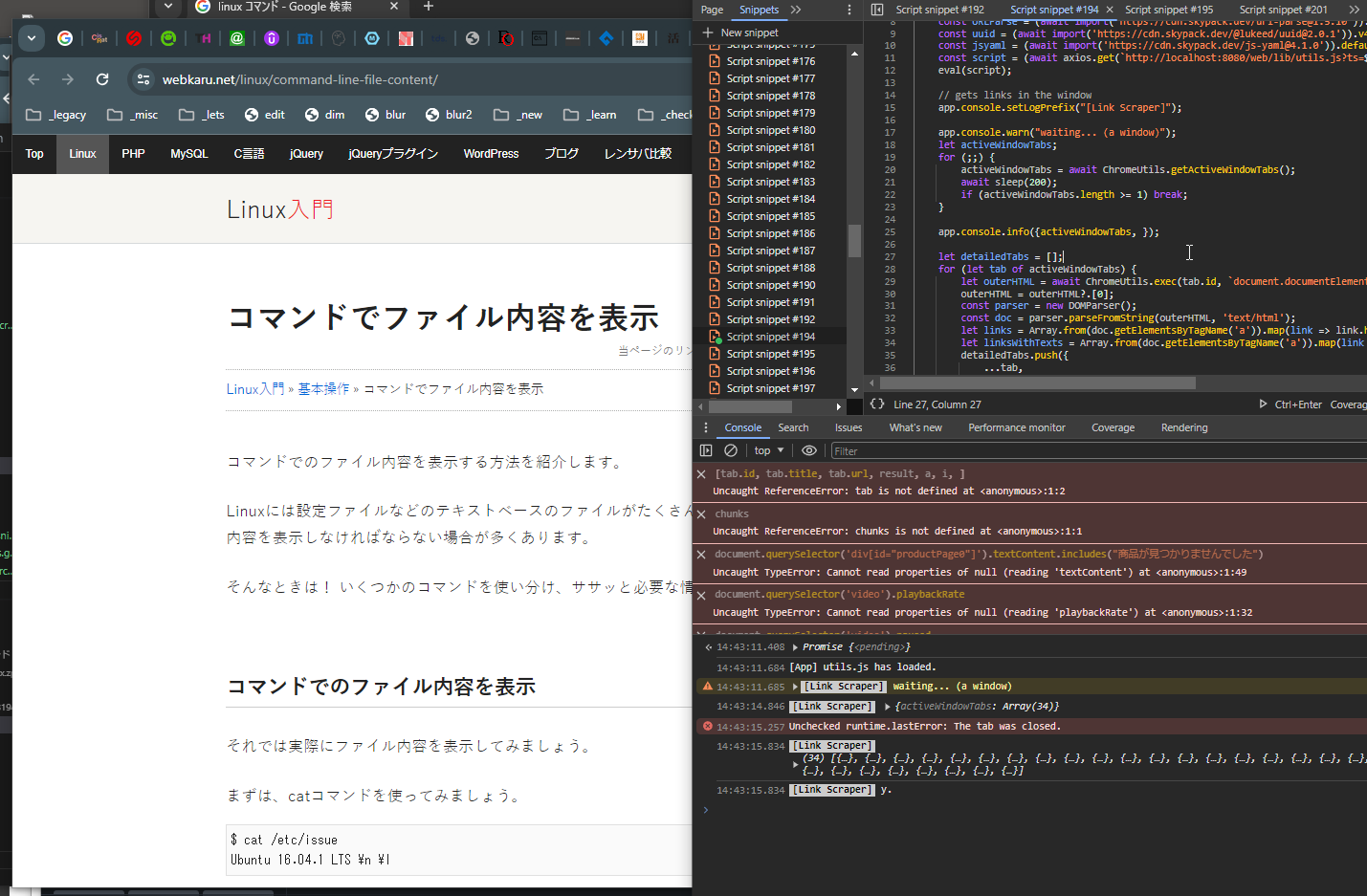 Let’s say there’s an article (e.g., “How to Use Linux Commands [For Beginners]”). It’s a simple idea, but I thought that if I could search with a certain query (e.g., “Linux commands”), crawl all the sites and pages that appear in the search results, get the links, and filter/extract URLs that look like affiliate ASP (e.g., filter by “a8.net” or filter by “aff”), I might get hints about what programs other people are using.